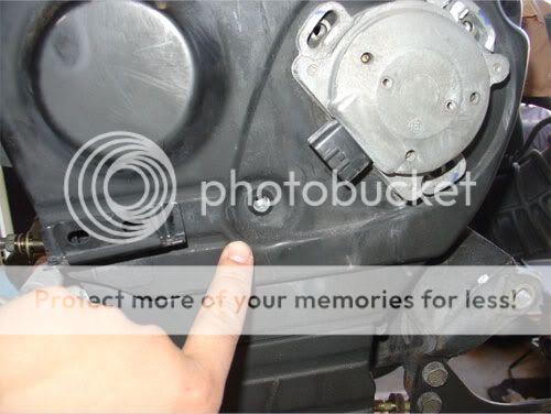 This plug to the right of the mount on underneath the intake is actually for the ground. The new mounts don't really allow for the bolt to go in, so I will shave down the motor mount, or notch it to allow for the ground bolt to go in.