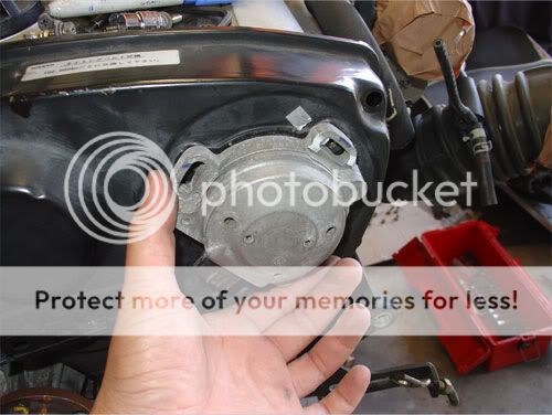 I wanted to hold off taking the CAS until all the timing belt cover were off. Here you can mark the CAS where the bolts were positioned, you can kind of still see the blue from the marker but mark it however so you know where the CAS should go.If it feels a little stuck, lightly wedge a small flat head screwdriver in on the sides and twist, it should pop right out with ease.