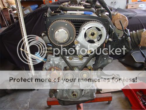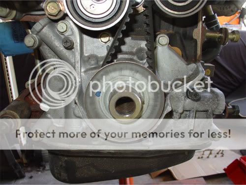 Voila! It's now off. The timing belt seems to be in good shape, but cheap insurance rules go here too. Spend the few bucks to replace the timing belt from Nissan or if you must have the GReddy or Power Enterprise one, feel free.