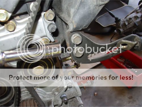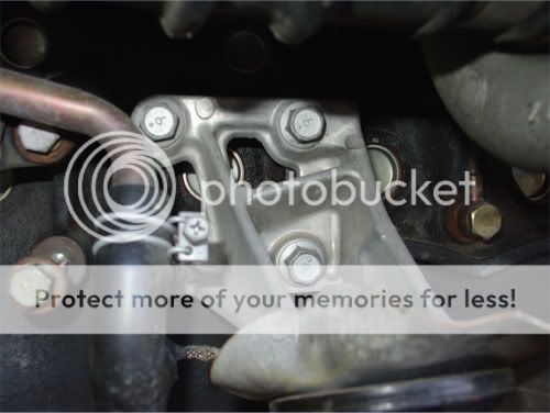 The arm bracket of the P/S pump. You could remove these two 12mm bolts, but I just wanted to crack them loose in case I wanted to remove them.