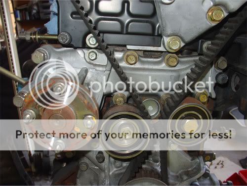 On the bottom timing cover, the bolt that is on the left [underneath the water pump] has a 8mm bolt without a grommet. The reason why it doesn't have a grommet is because if you look closely on the timing cover, the dang grommet is still sitting there. Don't make the same mistake I did and overlook this. All timing cover bolts should have a grommet.