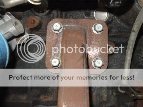 Okay, motor mounts. One problem I quickly noticed was that the thickness of the stock mount on the bottom is thicker than the Brad's mounts on top. A few washers should solve this problem using the stock bolts.