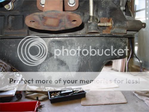 This picture shows the mount in relation to the sump area of the oil pan. For those of you who don't own a S30Z, this might not be a problem. But for me, I will use the RB20 o-ring, oil pickup, and pan out of the 200ZR.
