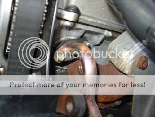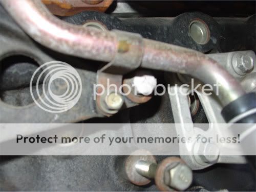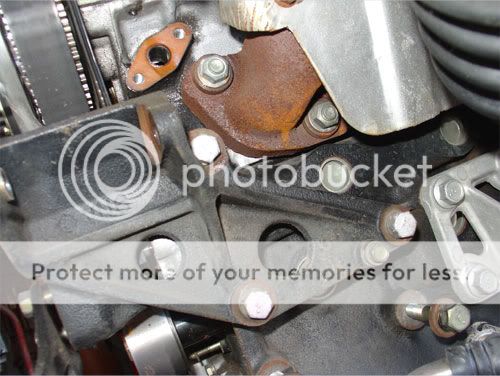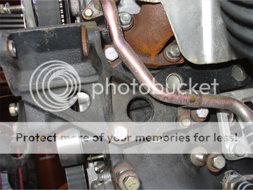 Okay, part of the A/C bracket. Two of the bolts are behind the oil pickup tube.