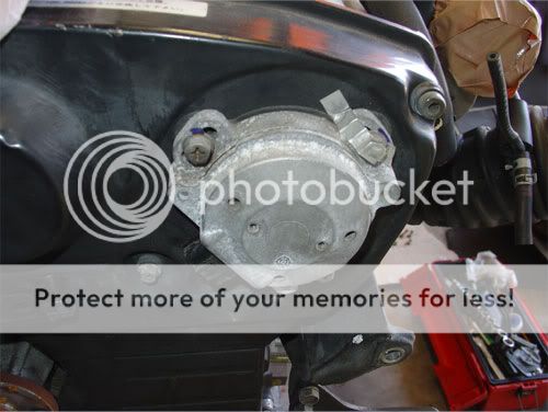 You can start to see the shape of the OEM water pump underneath. This will be changed out later with a factory N1 pump.