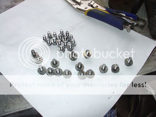 On the left are the stock oil pan bolts when cleaned up with a wire wheel, the ones on the right are dirty