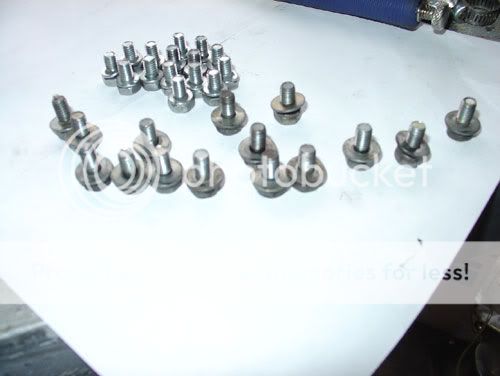 The larger ones you see towards the bottom of the picture are oil pan bolts from a 2nd generation Maxima. They still work fine so more power to universal Nissan bolts!